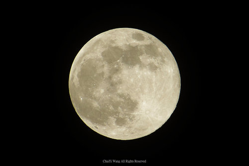 6月23日晚上外食後回家的路中,抬頭望了望天空,被又圓又亮的月亮所吸引,在路邊停好機車,拿出隨身攜帶的剛買了半個月的50倍類單眼相機留下圓月的影像。回家後邊修圖邊看電視新聞才知道,剛剛拍的竟是今年最大的超級月亮,錯過了可要再等18年才能再見,真想不到作者竟用超級50倍〈相當1200mm〉類單眼相機拍下了超級最大月亮。