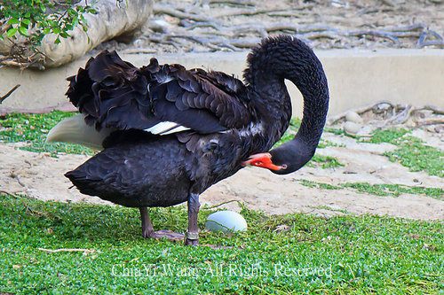 黑天鵝徐徐地步到蛋的旁邊整理起身上的羽毛